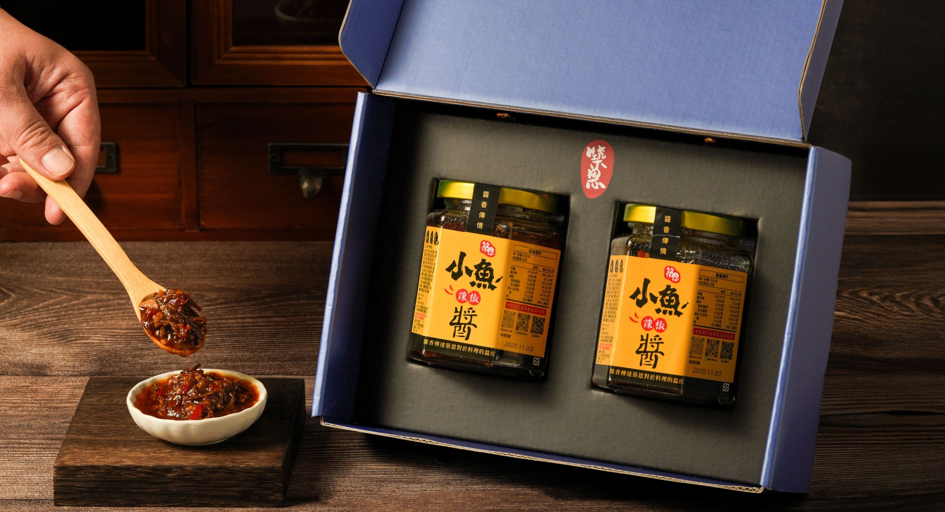 油亮顆粒、醬料一匙 → (案例|築恩小魚辣椒醬)5) 道具與桌面:把品牌語氣擺上桌