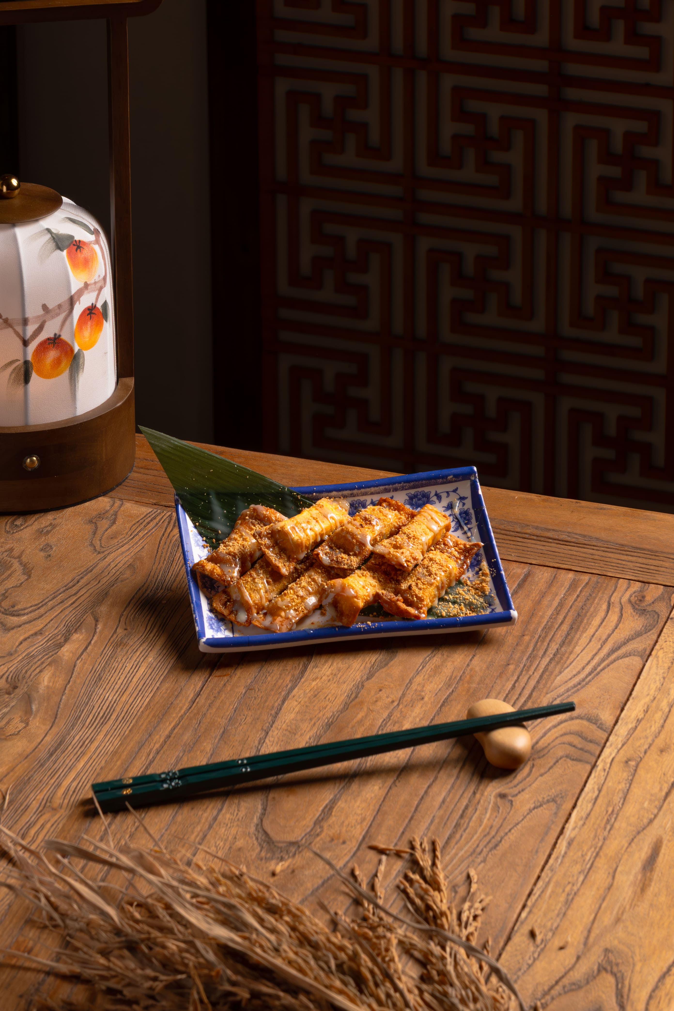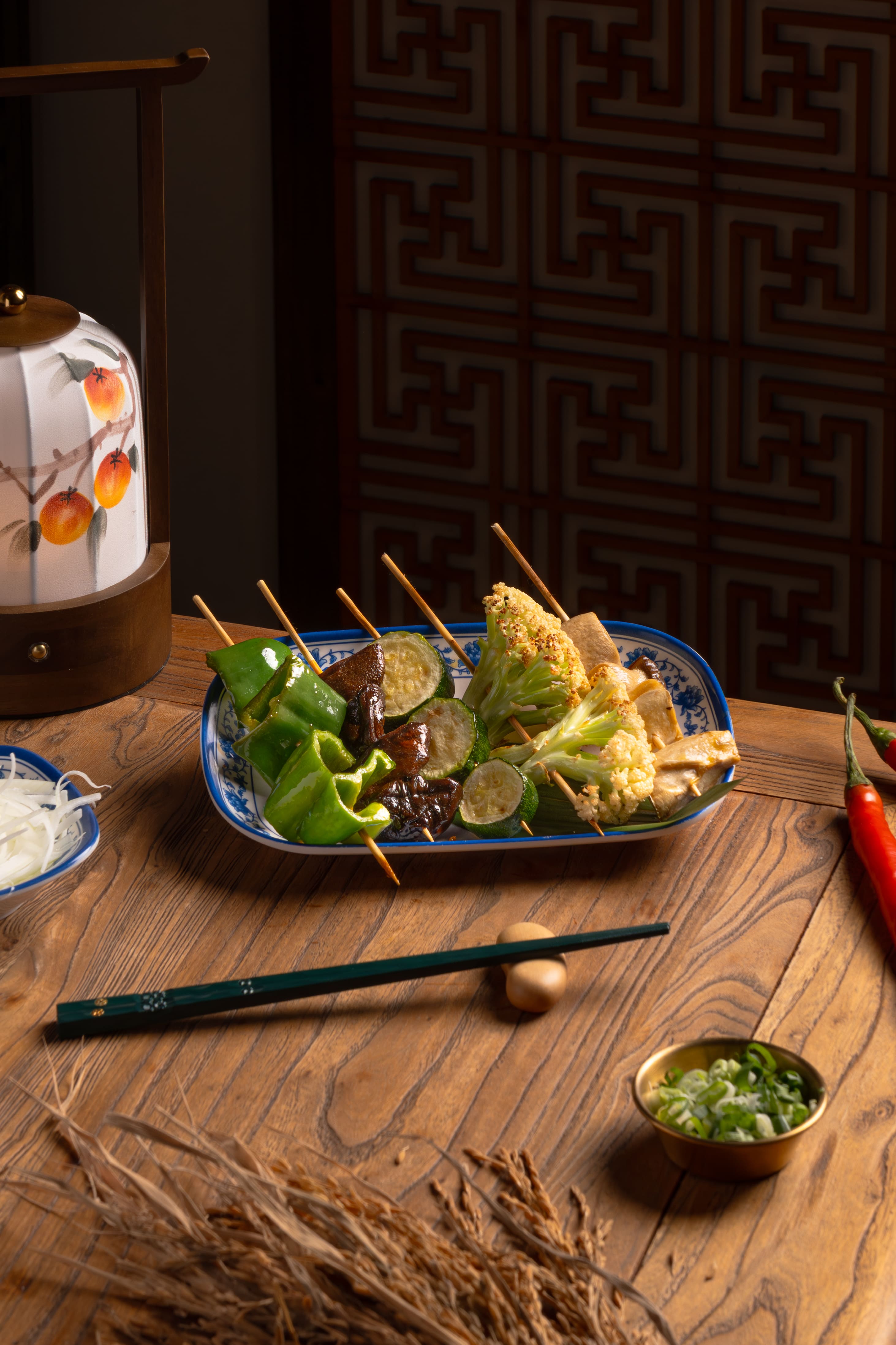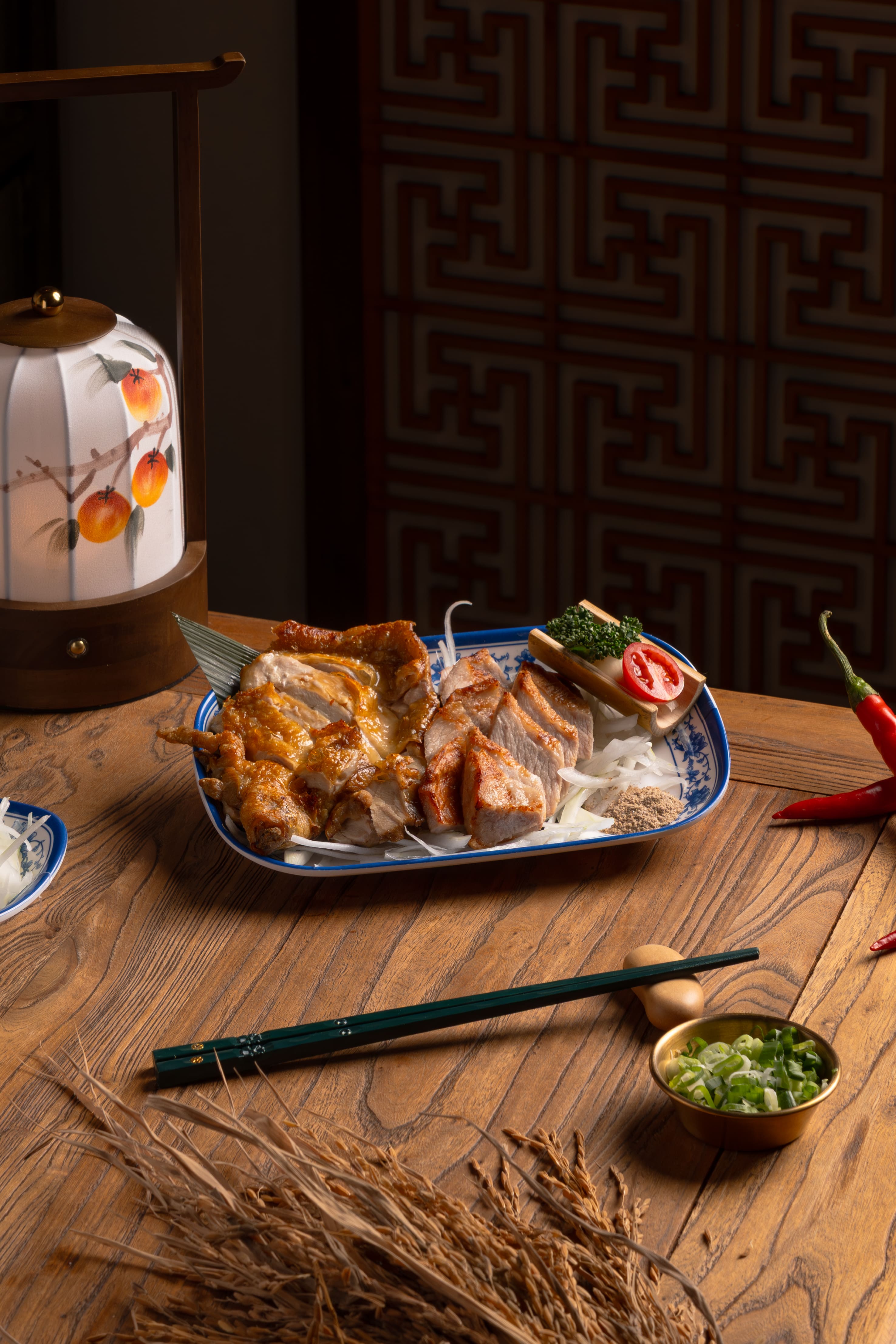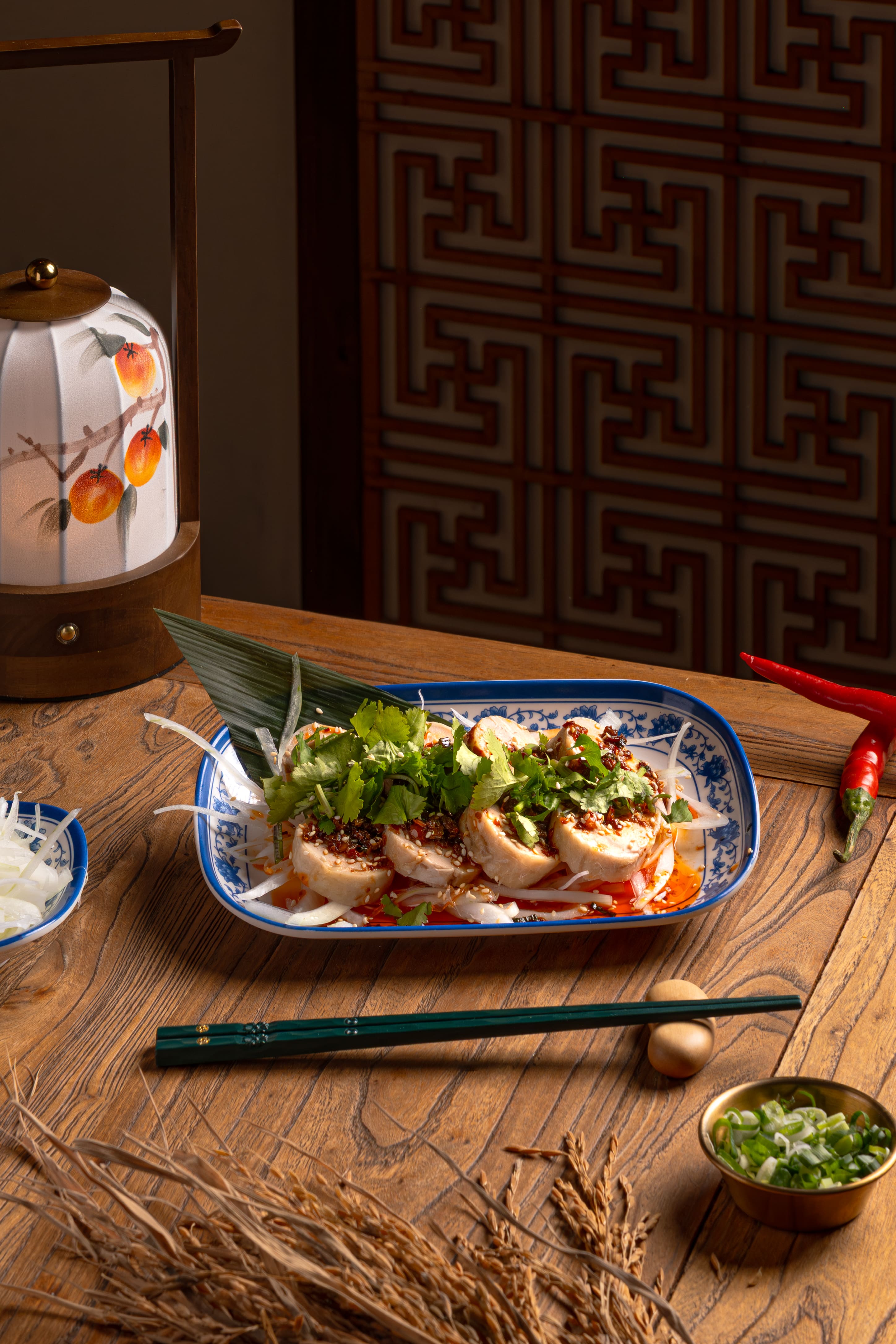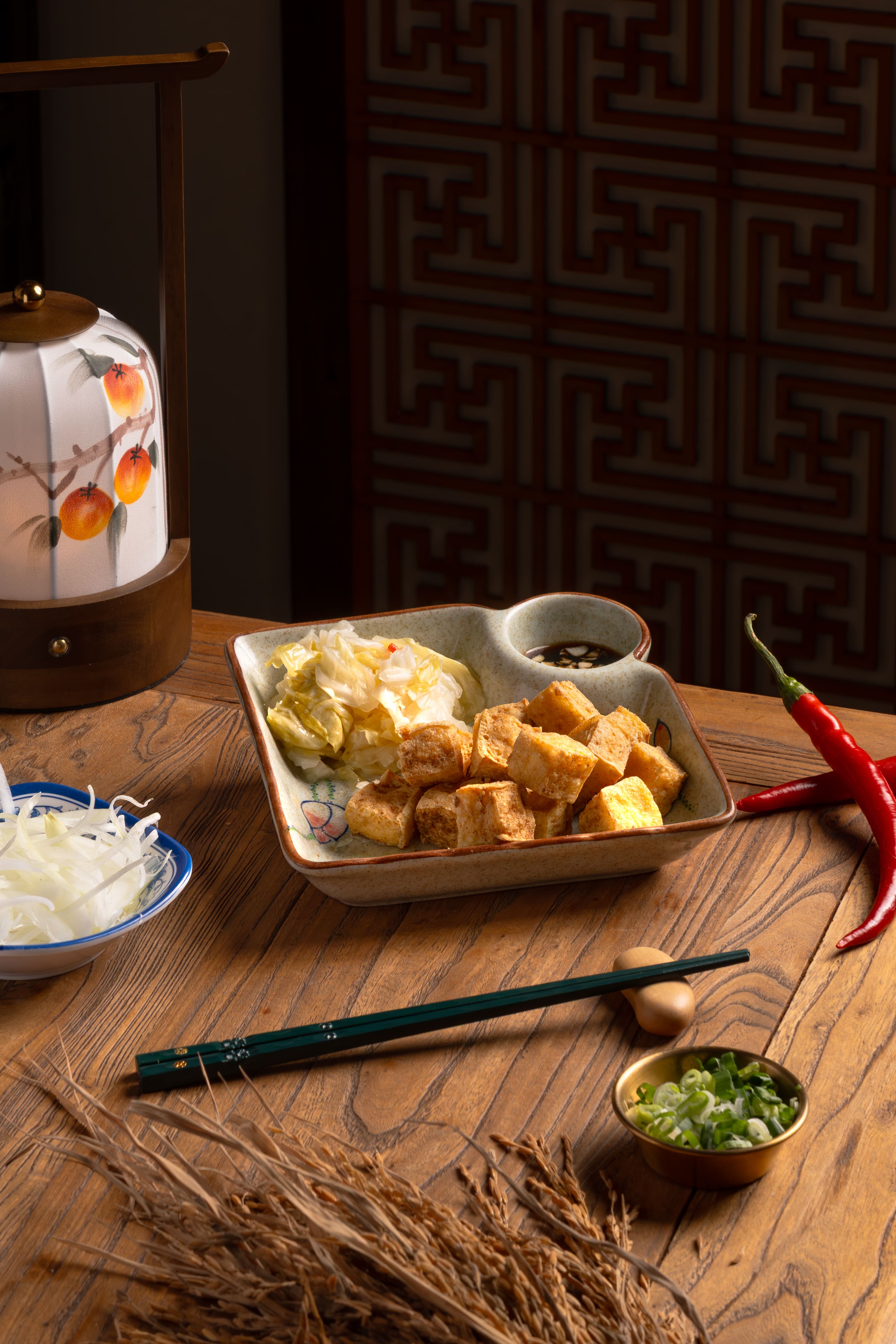 九宮格器皿是杏花村的特色之一。我們利用高角度(Top Down)與斜45度角的切換,展現精緻瓷碗與多彩食材的和諧律動。讓看似平凡的小菜,展現出宮廷饗宴般的儀式感。